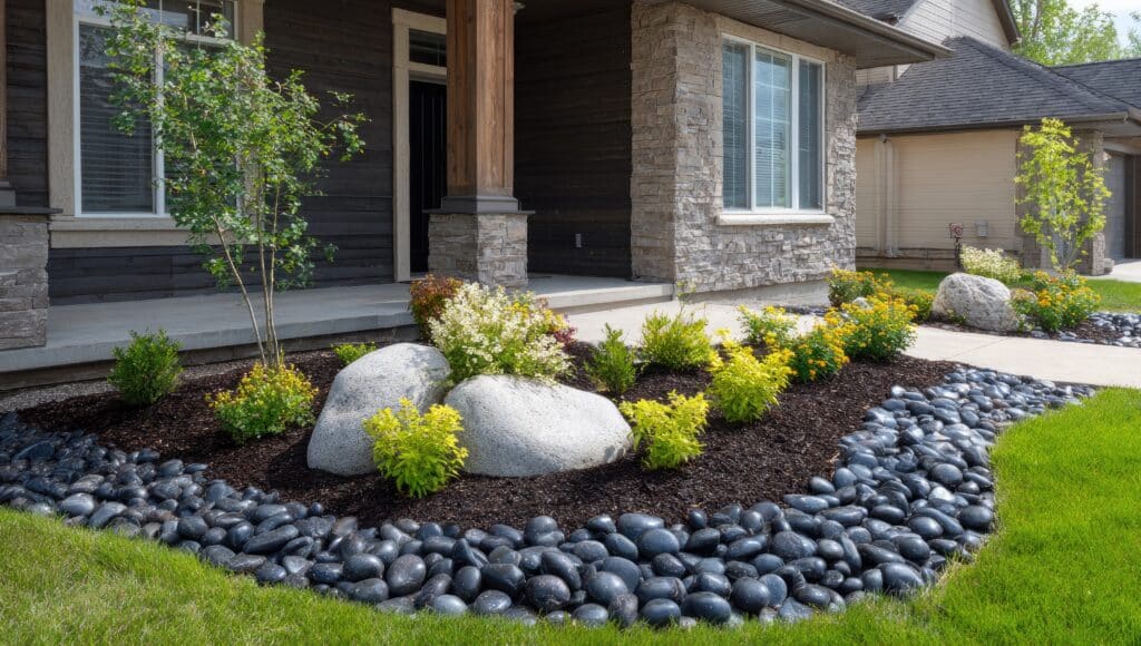 From sleek, decorative rock beds to rich organic mulch for moisture retention, every detail is chosen with your landscape’s long-term health and beauty in mind. These materials are provided exclusively as part of our full landscape design and installation services—not for bulk purchase.
